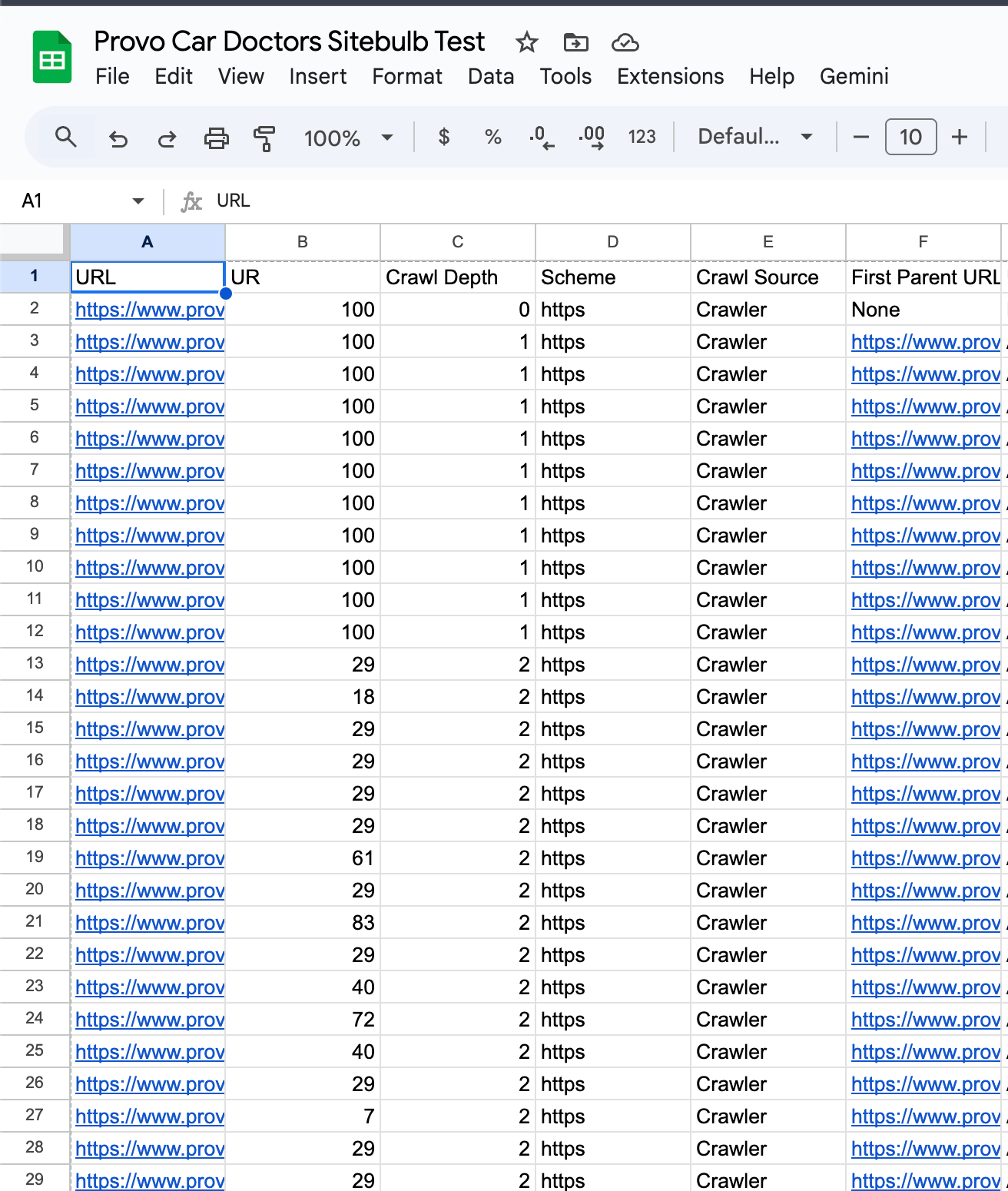 - Copy every cell on your Sitebulb export (including headers) and paste it into the first sheet (“Original Data”) on the Sitebulb Audit Template.